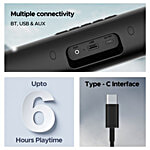 Liven up your watch parties with the 16 W RMS output of Aavante Bar Groove. Each sound element is boosted to transform your listening experience to the next level. Sing along to catchy tunes and immerse yourself in hair-raising action sequences with boAt's Signature Sound. The balanced audio wraps you all around for the ultimate realistic feel. Stay engrossed in captivating sound thanks to the 2.0 channel subwoofer. Its rich bass and elevated treble create a theatre-like environment right in the comfort of your home. Elevate your interior audio setup with Aavante Bar Groove's appealing design. Also, its compact build ensures that you can move this soundbar to an area of your liking or even carry it when you're on the move for non-stop entertainment. Indulge in music with a host of wired connections, such as aux and USB ports, along with Bluetooth v5.0 wireless technology. Host fun parties that raise the roof with enthralling music. The up to 6 hours performance of this soundbar gives you an ultra-groovy experience. You no longer have to spend time finding out the right way to charge. Featuring a USB Type-C charging interface, this soundbar provides effortless use. Additionally, the rapid charging speed lets you groove to your playlist uninterrupted.