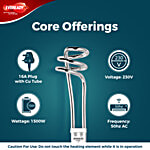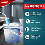 The Eveready Immersion Heater EP1500 in Blue and White is a reliable and safe solution for your water heating needs. Featuring a shock-proof plastic top and a copper tube, it ensures quick heating without compromising safety. Its ergonomic design facilitates easy handling. The heater comes in two variants with power capacities of 1000W and 1500W, catering to different heating requirements. A 2-year warranty from the date of manufacture testifies to its durability and quality. The heater, made of sturdy polycarbonate, sports a sleek blue and white finish and measures 450mm x 75mm x 75mm. Each package includes one unit of this efficient immersion heater.