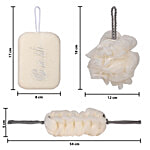 DP Loofah Set - Sponge + Back Scrubber + Loofah, Cream Colour, 3 pcs