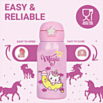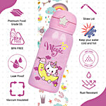 Femora Magic Unicorn Hot & Cold Thermosteel Water Bottle For Kids With Bag, Pink, 550 ml Pink