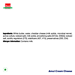 White Butter, Water, Cheddar Cheese (Milk Solids, Microbial Rennet, Active Culture, Iodized Salt), Milk Solids, Emulsifying Salts [331(Iii), 339(Iii)], Iodized Salt, Acidity Regulators (270), Stabilizers (407, 415), Preservatives (200, 234).