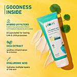 Aqua, C12-15 Alkyl Benzoate, Diethylamino Hydroxybenzoyl Hexyl Benzoate, Ethylhexyl Triazone, Bis-Ethylhexyloxyphenol Methoxyphenyl Triazine, Carbomer, 1,3-Butylene Glycol, Betaine, Caprylic/Capric Triglyceride, Helianthus Annuus (Sunflower) Seed Oil, Propanediol, Cetearyl Olivate, Sorbitan Olivate, Glycerin, Cetearyl Alcohol, Glyceryl Stearate, Titanium Dioxide, Zinc Oxide, Triethoxycaprylylsilane, Centella Asiatica (Cica) Extract, Hydrolyzed Sodium Hyaluronate, Sodium Hyaluronate Crosspolymer, Sodium Acetylated Hyaluronate, Sodium Hyaluronate, Argania Spinosa (Argan) Kernel Oil, Allantoin, Phenoxyethanol, Ethylhexylglycerin, Pentylene Glycol, Sodium Gluconate, Cocos Nucifera (Coconut) Oil, Lecithin, Xanthan Gum, Tocopheryl Acetate, Citric Acid.