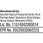 Manufactured Name & Address: Dairy Rich Foods ,Factory Unit - Gat No. 143, At post Kogil Budruk, Taluka - Karvir, Kolhapur, Maharasthra - 416216