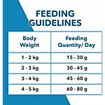 The daily feeding quantity varies according to the age, activity, size and temperament of your dog. You can serve your pet with recommended amount by dividing it with number of times you feed daily.