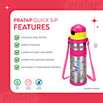 No Question askedPratap Water Bottle Steel, Quick Sip, Pink