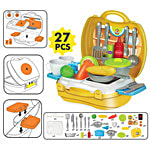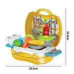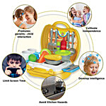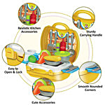 Discover the delightful Wembley kitchen set, a portable storage box that doubles as a mini kitchen playset. Crafted with ABS, BPA-free plastic, this set features smooth, round edges and no sharp corners, ensuring a safe and enjoyable play experience for your little ones. Designed to encourage imaginative culinary adventures, this set includes a variety of kitchen essentials like pots, pans, utensils, and play food items. With realistic details and a range of accessories, children can engage in pretend play, developing their creativity and social skills as they take on the role of a budding chef in their own miniature kitchen. The portable design allows for convenient travel, enabling children to play in multiple venues and fostering the habit of storage from an early age. Invest in this trustworthy, BIS-approved kitchen set and watch your child's imagination soar as they embark on delightful culinary explorations.