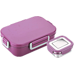Signoraware Chipmunk Stainless Steel Lunch Box - Airtight & Leakproof, Magenta, 2 pcs (850 ml + 130 ml)