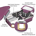 Signoraware Nugget Stainless Steel Lunch Box - Airtight & Leakproof, Magenta, 2 pcs (700 ml + 130 ml)