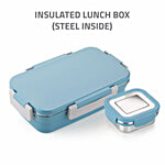 Signoraware Nugget Stainless Steel Insulated Kids Lunch Box - With Container, Teal Blue, 2 pcs (700 ml + 130 ml)