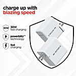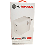 Nu Republic Sprint All In One 30W 6A Fast Charging Adaptor - With Type C To Type C Cable, Supports All Fast Charging Technologies, White, 1 pc