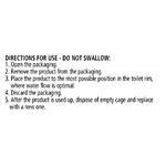 • Take the block out of the pack; stretch the plastic clip.Use the clip to attach and block securely into the rim of the toilet where flush water flows maximum.