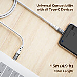 boAt Type C To Type C 3A 60W Fast Charging Cable - 1.5 m, White, 1 pc
