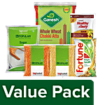 bb Combo Ganesh Atta 5 kg + Emami KGMO 1 L+ Fortune Soya Oil 1 L + bbPopular Sugar 2 kg, Masoor & Moong Dal 500 g