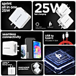 Nu Republic Sprint All In One 25W 5A Charger With Type C Cable Supports All Fast Charging Technologies White, Red, Cable Included, 1 pc