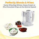HOME>ELECTRONICS>KITCHEN APPLIANCES>BLENDERS & CHOPPERS>KENT 16050 Hand Blender - 150W, 5 Speed Control, Copper Motor, Multiple Beaters, Overheating Protection, White