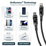 Ambrane Type-C To Lightning iPhone Cable, 22.5 W Fast Charging, 480 Mbps Data Sync & Car AirPlay, LED Indicator, Black, 1 pc
