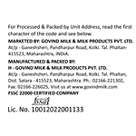 Manufactured & Marketed By: Govind Milk & Milk Products Pvt Ltd Phaltan.At/p-Ganeshsheri,Pandharpur Road Kolki,Tal-Phaltan,Dist-Satara-415523,Maharashtra India