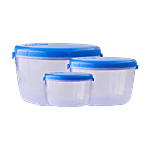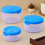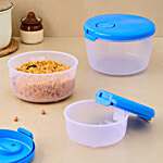 Laplast Plastic Storage Container - Blue Lid, Transparent, Plain, Round, 3 pcs (1.8 L + 1.2 L + 600 ml)