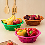 Laplast Fruit/Vegetable Plastic Basket - Round, Assorted Colours, 3 pcs