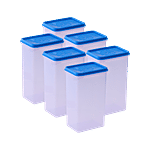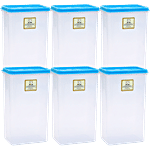 Laplast Storewell Airtight Plastic Container - Blue Lid, Transparent, Rectangular, 1.75 L (Set of 6)