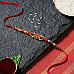 Kumkum and rice are traditional elements used in Rakhi rituals, symbolising auspiciousness, and prosperity. The sister applies Kumkum and rice on her brother's forehead, signifying her blessings and prayers for his well-being.