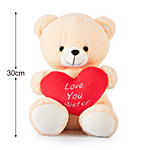 The Dimpy Stuff Teddy Bear, featuring a "Love You Sister" quote on its heart, is a charming gift. Measuring 30 cm and in a cream colour, this soft toy is crafted from premium polyester fabric and filled with 100% virgin polyester fibre. It is washable, non-toxic, and completely safe for children. This adorable teddy bear is perfect for expressing love and affection, making it an ideal companion for your sister.