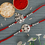 eCraftIndia Ganesha Rakhi Set With Roli Chawal - Red & Silver, 2 pcs