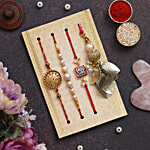 eCraftIndia Floral/Pearls/Diamonds/Lumba Designer Rakhis - With Roli Chawal Pack, 4 pcs