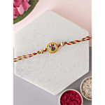 Celebrate the joyous occasion of Raksha Bandhan with the eCraftIndia Colourful Religious Lord Ganesha Rakhi. This Rakhi beautifully combines religious symbolism with vibrant colours, creating a truly delightful and auspicious piece. The Rakhi features a Lord Ganesha charm adorned with intricate details, adding a touch of divinity to the festivities. The threads are adorned with vibrant shades of red, green, and yellow, representing love, prosperity, and happiness. The set includes a Roli Chawal pack, allowing you to perform the traditional rituals with ease. Express your love and strengthen the bond with your brothers with this colourful and auspicious Rakhi.