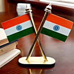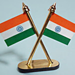 House of Festivals Cross Design Golden Pole Tiranga Stand - For Car Dashboard/Table/Home Decor, 1 pc