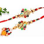 No Question askedPearlfiesta "Bhaiya Bhabhi" Rakhi Set With Lumba Rakhi - Multicolour, Peacock Design