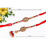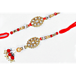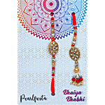 Pearlfiesta "Bhaiya Bhabhi" Rakhi Set With Lumba Rakhi - Red & Golden, 2 pcs