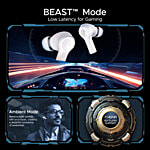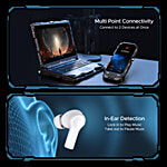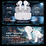 The boAt Airdopes Flex 454 ANC in Zinc White deliver a blend of cutting-edge features and long-lasting performance. With Active Noise Cancellation (ANC), they ensure a distraction-free listening experience for up to 60 hours on a single charge, supported by a quick 1-2 hour charging time via Type-C. Featuring a 10mm driver size, they offer immersive audio quality with Adaptive EQ for optimal sound in any environment. The earbuds boast quad mics for crystal-clear calls and support multi-point connectivity, allowing seamless switching between devices within a 10m Bluetooth range. Their IPX5 rating makes them sweat and water-resistant, ideal for active use. This TWS model is designed for versatility across mobiles, desktops, and tablets, packaged with TWS earbuds and a charging cable, backed by a 12-month domestic warranty for reliability.