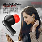 pTron Bassbuds Duo TWS Earbuds - With Stereo Calls, 32H Playtime, Stereo Sound & Type C Charging, Black/Red, 1 pc