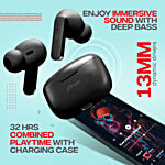 TWS earbuds with Large 13mm Dynamic Driver to produce Immersive Stereo Sound Deep Bass | Smart Touch controls 32 Hours of non-stop Combined Playtime with the charging case. Ergonomic Lightweight Wireless Earbuds with Ergo-Fit Design. Built-in HD Mic for Clear Call Quality. Passive Noise Cancellation, IPX4 Water/Sweatproof Instant Access to Device's Voice Assistant. Connect, Auto Re-connect Widely with Compatible Smartphones, Tablets, and other Bluetooth Smart Devices.; Easy Touch Controls to Manage Music/Calls. Stereo Mono Bud Capability. Compact Lightweight On-the-go Charging Case for Extended Playtime. Type-C Charging 1-1.5Hrs Charge Time. S/M/L Soft Silicone Eartips for Every Ear Canal Size. 1-year manufacturer warranty from the date of purchase on manufacturing defects only.