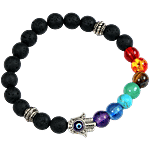 Pearlfiesta Gift Reiki Infused Handmade 7 Chakra Friendship Bracelet/Band For Women Evil Eye Bracelet Semi Precious Gemstone Onyx Lava Rock Healing Crystal Bracelet For Men Kabbalah Bracelet