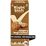Right Shift Jaggery Ragi Cookies are made with whole grains instead of maida and sweetened with jaggery instead of white sugar. These cookies are packed with ragi, almonds and seeds, allowing you to experience the goodness in every bite. They are more than just a high fibre digestive option, containing protein, calcium, iron, 6 B-vitamins and 3 vital micronutrients. The cookies are curated with extra care, containing no added preservatives, artificial flavours or colours, making them a guilt-free anytime snack.