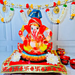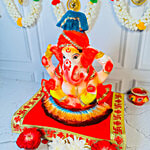 Invite the divine presence of Lord Ganesha into your home with the Mangal Bhavan Coloured Ganesha Idol, measuring 25.4 cm (10 inches). This beautifully crafted idol, made from shadu mitti clay, colours, and water, is adorned with a vibrant array of hues, including red, pink, yellow, golden, blue, black, and white. The idol's intricate detailing and colourful design, featuring Ganesha's mouse companion, bring both artistic charm and spiritual significance to your space. Weighing 1.7 kg, it is a durable and eye-catching addition to any decor. Ganesha, revered for his wisdom and ability to remove obstacles, will guide you on your spiritual journey, helping you overcome challenges and achieve your goals. Ideal for placement in meditation spaces or altars, this idol enhances your environment with positivity, prosperity, and good luck, making it a meaningful and inspiring focal point in your sacred space.