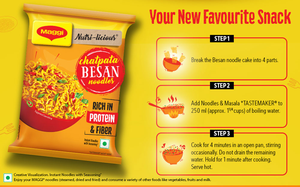 Maggi Nutri-licious Chatpata Besan Noodles Is a favourite among people of all ages. Maggi Besan noodles now come with the goodness of Besan, Protein, and Fibre. It is the perfect choice for those needing a quick and satisfying meal. These noodles are made with the choicest quality spices and ingredients to provide an excellent taste and experience.