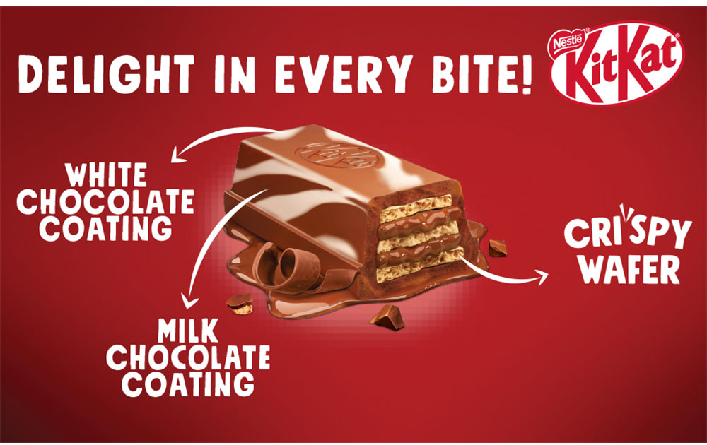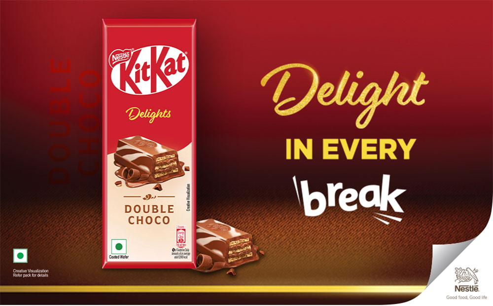 Experience the delight in every bite with KitKat Delights Double Choco. Indulge in the layers of milk and white chocolate coating & crispy wafer. Just unwrap your KitKat, break off one of the fingers, snap it in half, and enjoy! Have A Break, Have A KitKat.