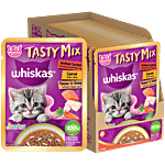 Whiskas Tasty Mix Kitten 2-12 Months Wet Cat Food - Seafood Cocktail Carrot Flavour in Gravy