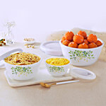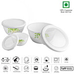 Cello Opalware Green Orchard Mixing Bowl Set - With Lid, 3 pcs (500 ml, 1 L, 1.5 L)