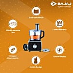 1 x Food Processor Unit , 3x Jars (Liquidising jar with Blade, Grinding Jar with Multifunctional Blade, Chutney Jar with fixed blade) , 1 x Processing Bowl , 1 x Spindle , 1 x Spindle Extension , 1 x 2 in 1 Pusher , 1 x Kneading and Chopping Blade , 1 x Fine/Coarse shredding blade , 1 x Unique Slicing Blade , 1 x Spatula , 1 x Citrus Juicer , 1 x Centrifugal Juicer, 1 x Instruction Manual , 1 x Warranty Card |
