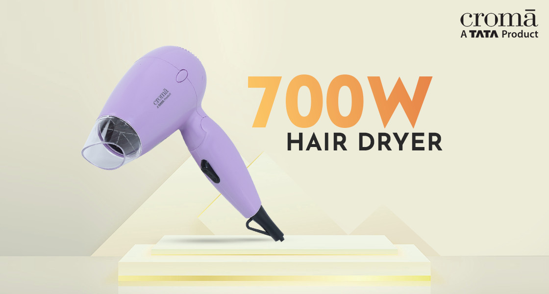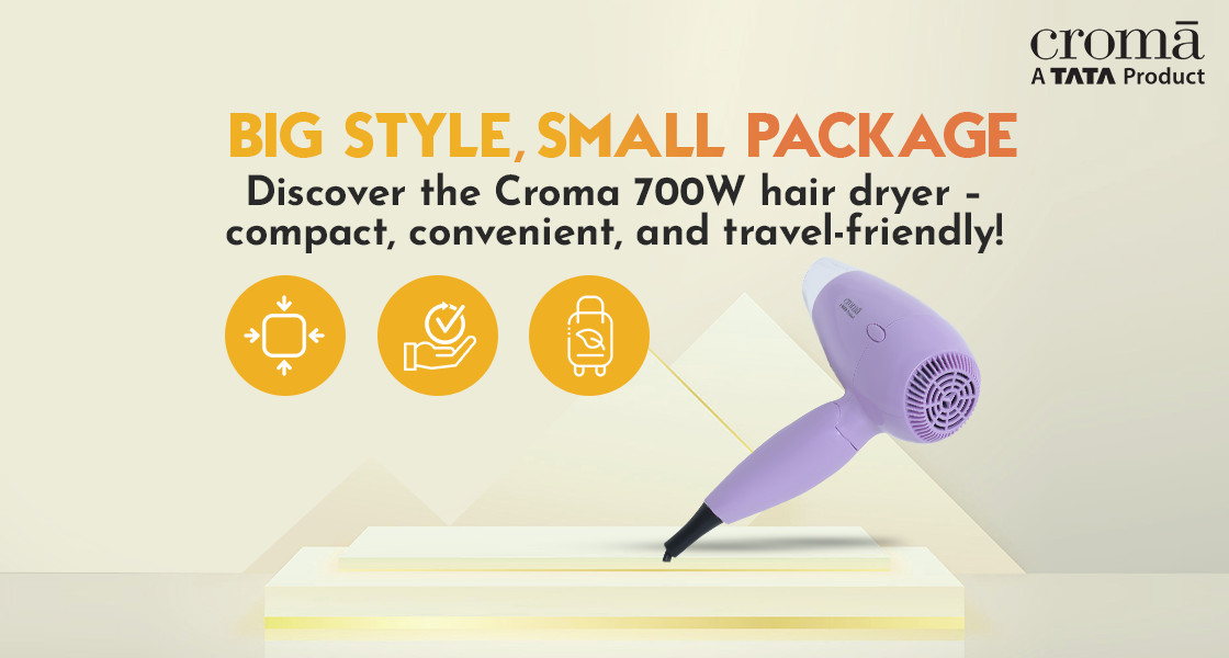 Experience the convenience of the Croma 700W Hair Dryer ‚ “ compact, portable, and perfect for travel. This lightweight dryer is your go-to companion for styling on the go, ensuring you always look your best no matter where you are.