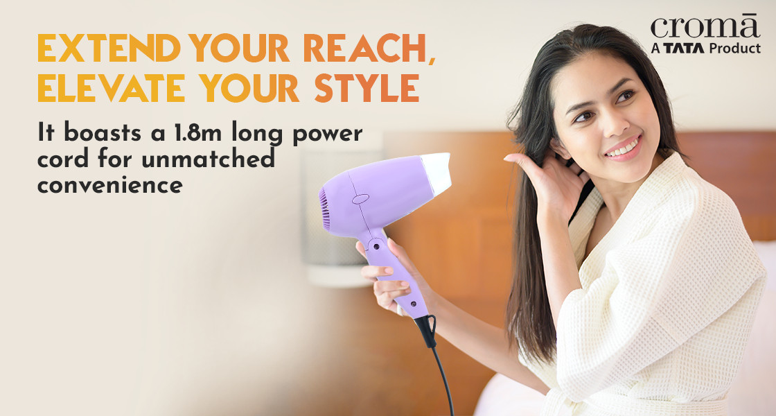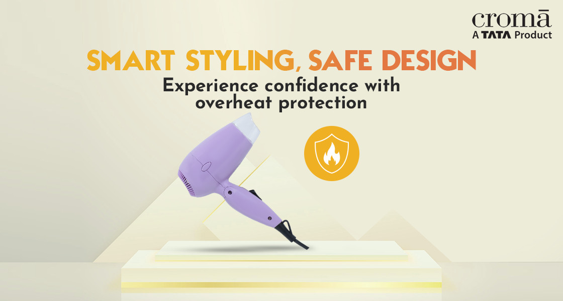 This Croma hair dryer is designed with your safety in mind, so you can confidently create your desired look without worry. Its built-in overheat protection feature lets you enjoy peace of mind while styling.