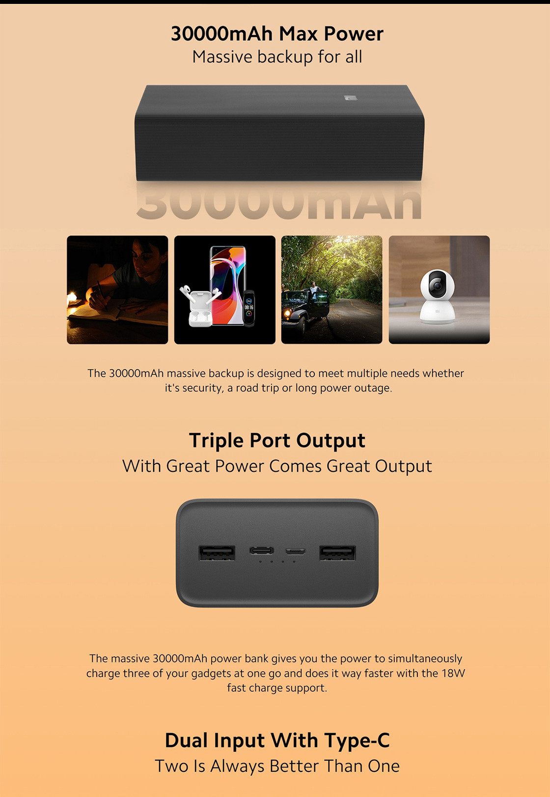 Boasting a 30000mAh battery, the Mi Boost Pro 30000mAh Power Bank provides a substantial backup for all your needs. So, whether you're on a road trip, facing a power outage, or simply needing extra security, this power bank ensures you stay powered up.