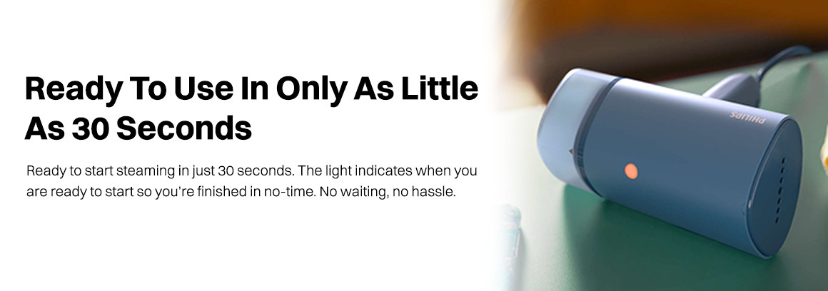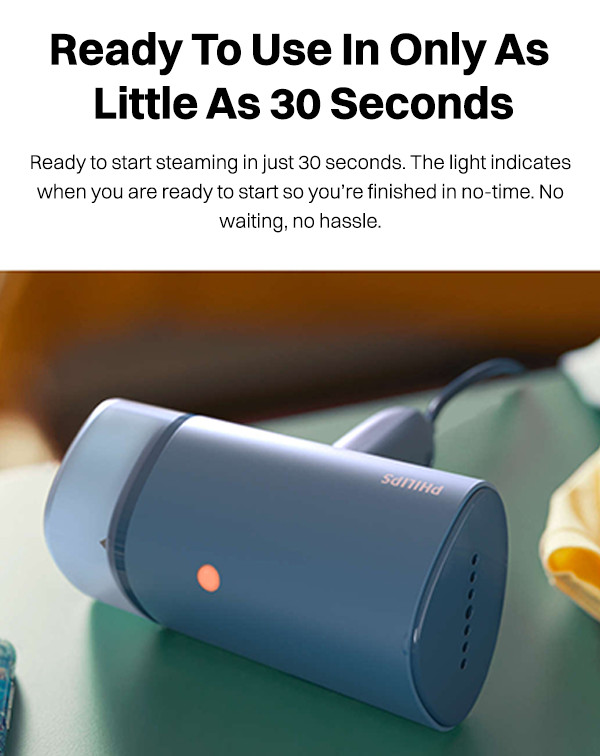 A convenient indicator light lets you know within 30 seconds when it's ready, allowing you to start steaming without any waiting or hassle.