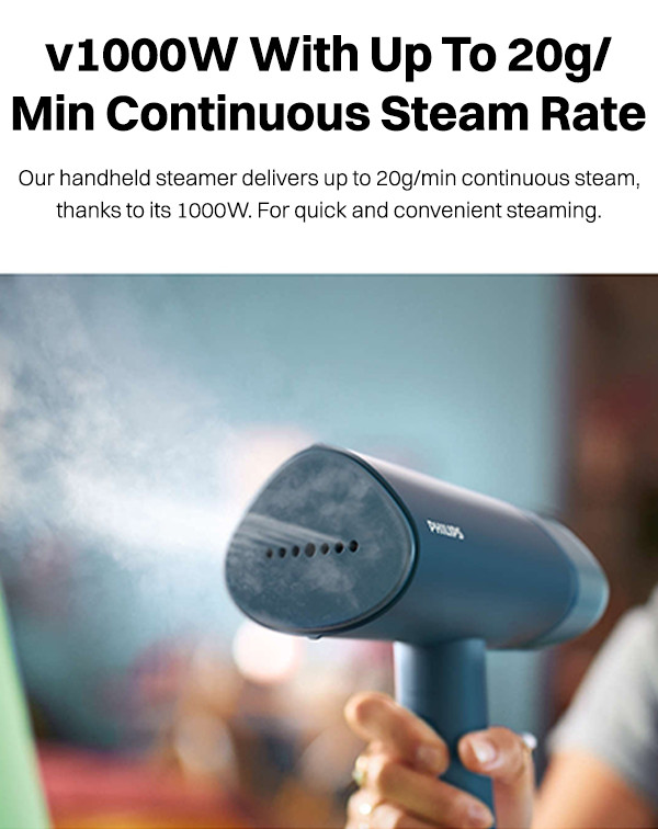 Light, compact, and foldable, the PHILIPS 3000 Series STH3000/20 1000W Handheld Garment Steamer is easy to use and store. Its smart design ensures fresh and wrinkle-free outfits anytime, anywhere. So, it is your ideal companion for quick touch-ups whether you're at home, traveling, or preparing for an important event.