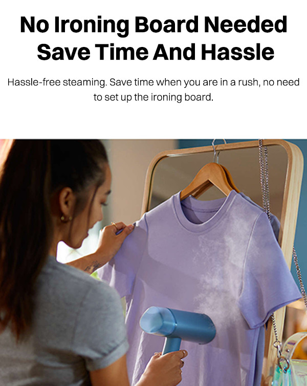 This steamer's hassle-free operation eliminates the need for an ironing board. And, this feature is especially handy when you're in a rush, as there's no setup required. Simply grab the steamer, and you're ready to tackle wrinkles without any additional effort.