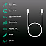 Type C to Type C 3.2 Feet (1M) Cable (2 Mbps Data Speed, White), 1 Unit